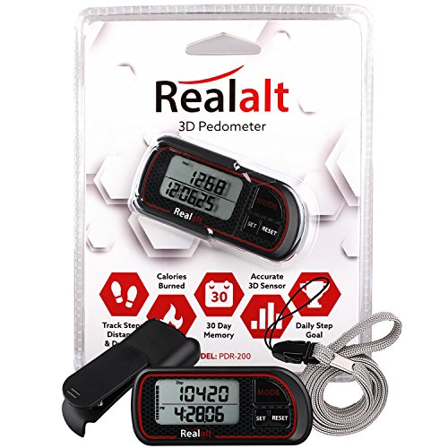 -. Title : Realalt 3D Pedometer with Clip and Strap PDR-200| Best Pedometer for Walking with 30-Days Memory. Accurately Track Steps, Calories, Distance Miles/Km & Daily Target Monitor for Men & Women