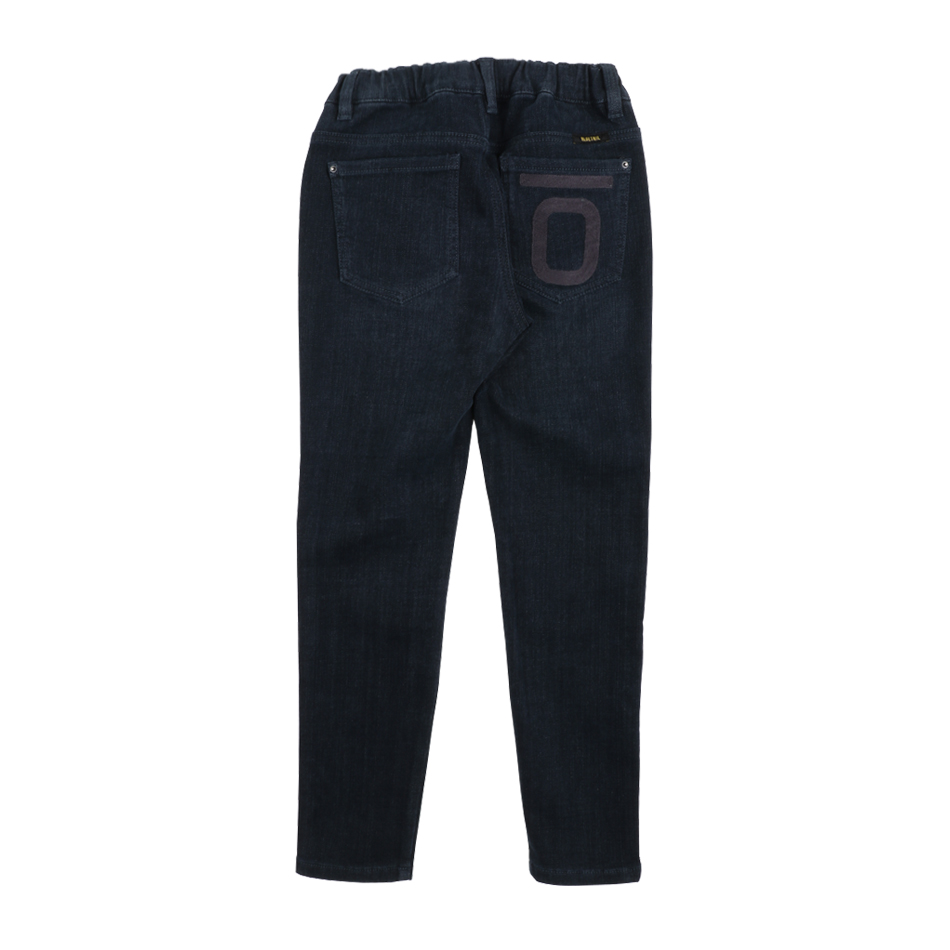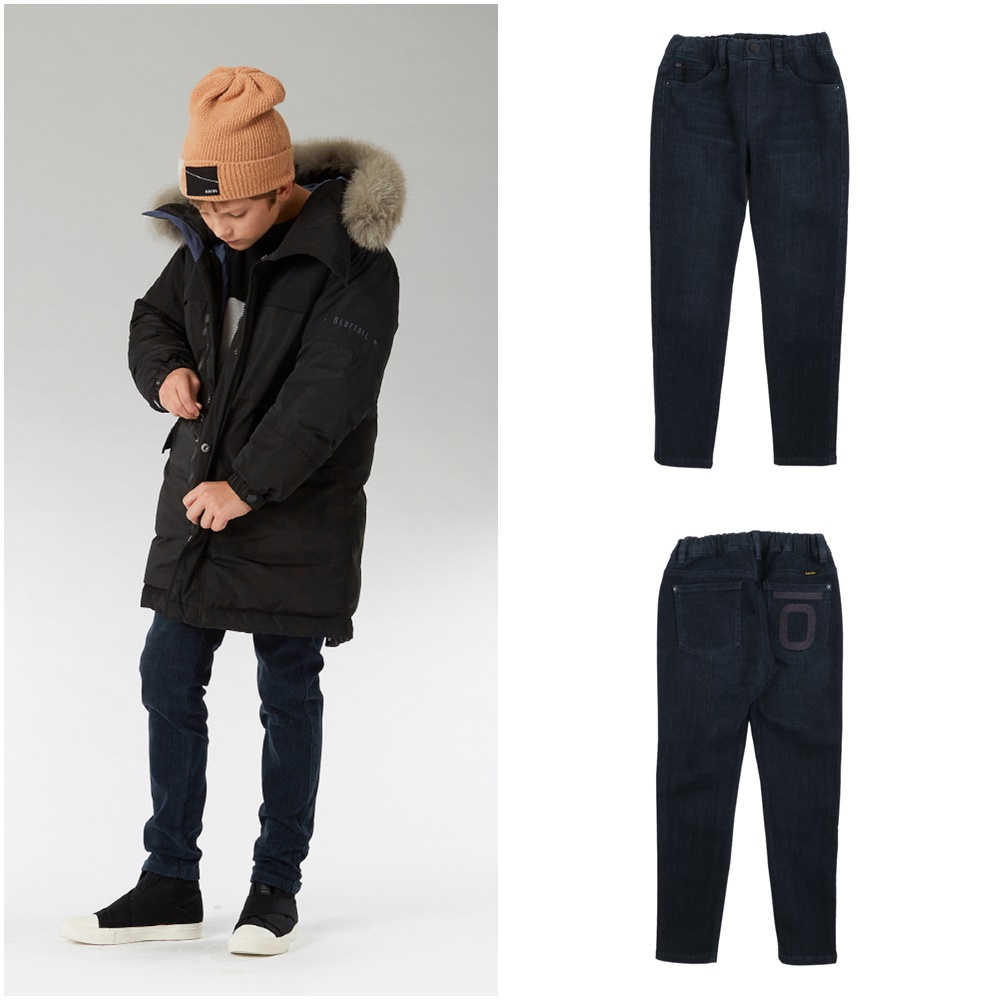 네이비 컬러로 워싱한 통 고무줄 데님 팬츠입니다.