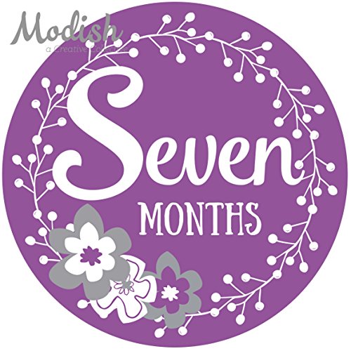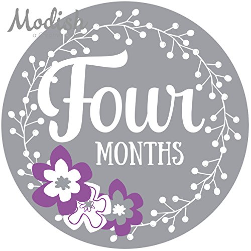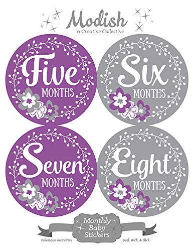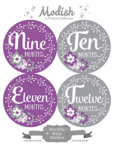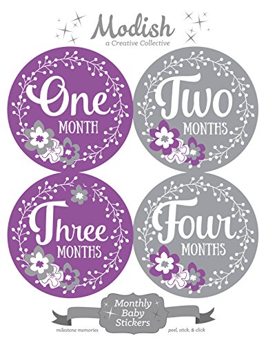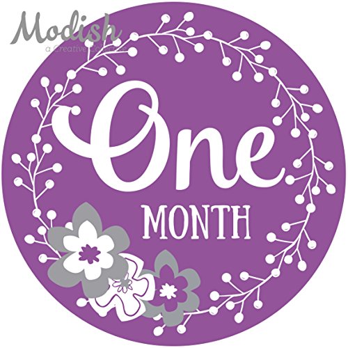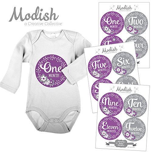 12 Monthly Baby Stickers, Purple, Gray, Flowers, Girl, Baby Belly Stickers, Monthly Onesie Stickers, First Year Stickers Months 1-12, Purple, Grey,...