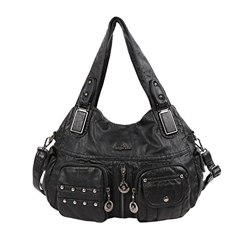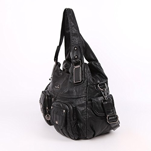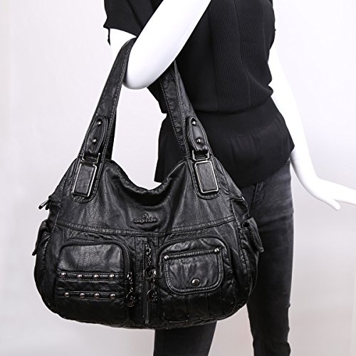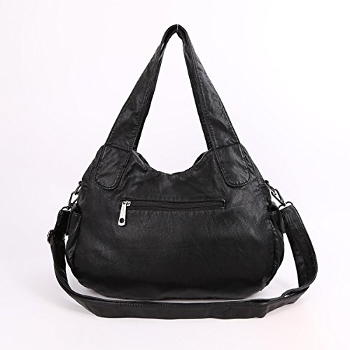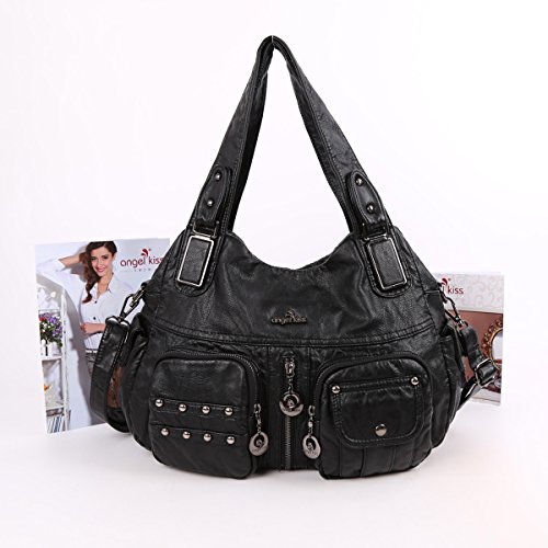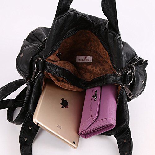 Angelkiss 2 Top Zippers Closure Multiple Pockets Handbags Washed Leather Shoulder bags Women XS160738