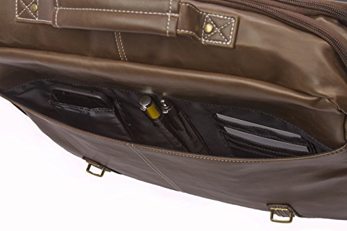 -. Feature : Padded Laptop Compartment - Designed to protect laptops up to 15.6 inches in screen size. / Premium Sliding Clasps - Quick opening and secure closing with easy-to-use, strong metal clasps (no magnets). / Front organizer and interior pockets are perfect for pens, cell phones, chargers, iPads, other tablets, and more business essentials. Durable vegan leather exterior, nylon lining, and solid metal accents. / Bag Style: Professional Flapover Case Large Mens Shoulder Pack Faux Artificial Leather Handbag School College Business Travel Accessories. For all Apple Macbook Pro and Air, Ultrabooks, Notebook PCs, Laptop Computers, Netbooks - 10, 11, 11.6, 12, 13, 13.3, 14, 14.7, 15, 15.4, 15.6, 16 inches. / Dimensions: 16.5 x 12.5 x 4". Laptop Compartment: 15" wide. Fully adjustable shoulder strap. Photos show 15.6" Dell laptop.