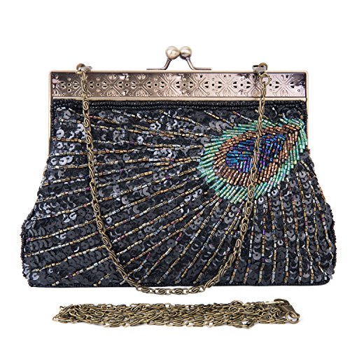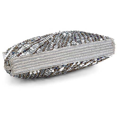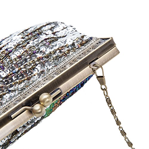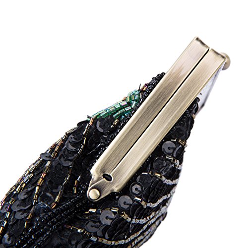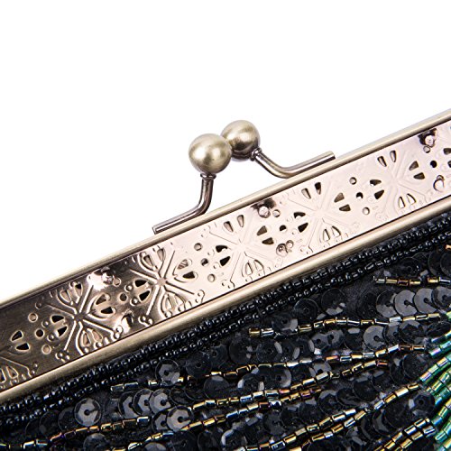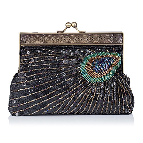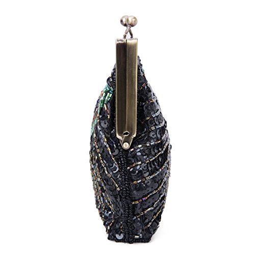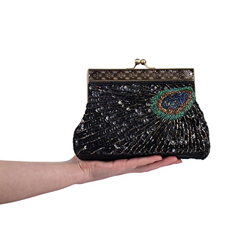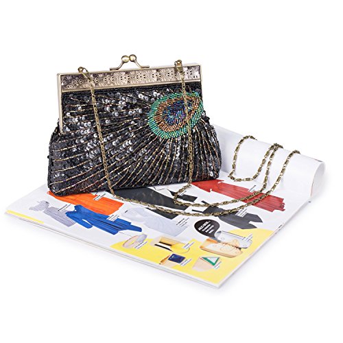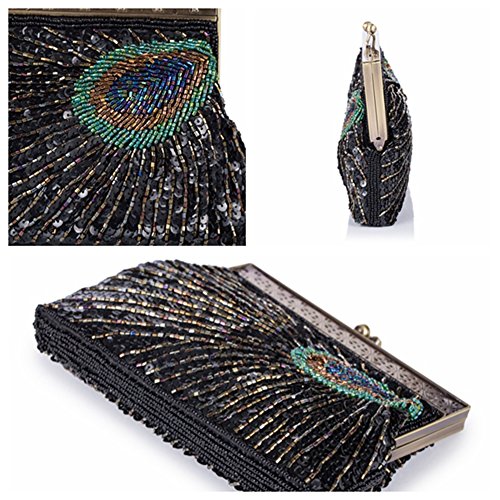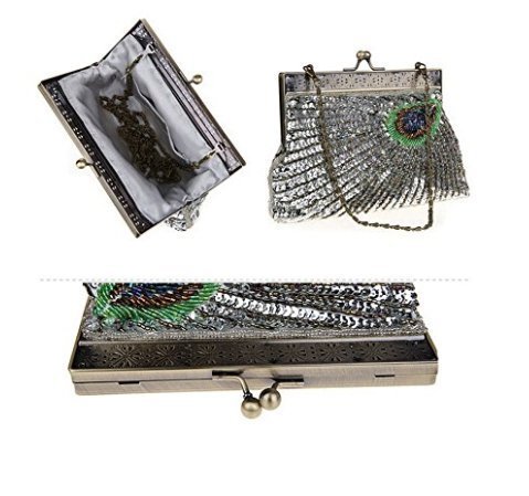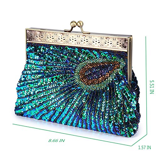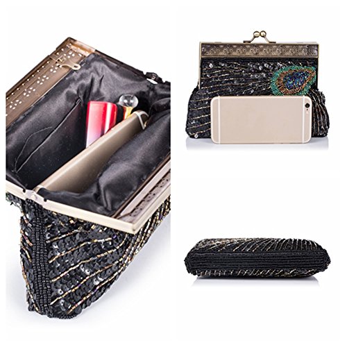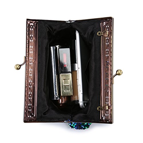 Features: Size: 8.66"(L) * 1.57"(W) * 5.51"(H) Material: sequins beaded fabric lining Closure type: kiss-lock closure Occasions: Wedding/prom/party/black tie/show/cocktail/night out Fit enough: cell phone/small wallet/mirror/lipstick/makeups/cash/credit card/car keys/ Notes: