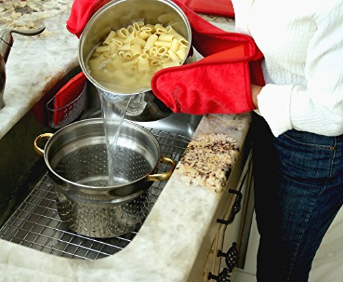 - CONVENIENT. Hangs over your shoulder so it's always within reach for grabbing hot items or being used as a prep towel.