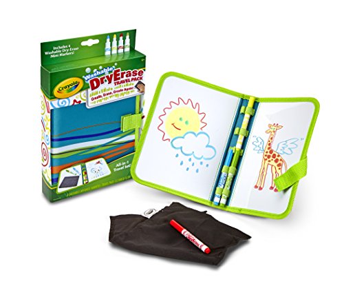 Create, erase and create again - on the go or anywhere you like! Crayola Dry-Erase Travel Pack gives you two reusable drawing surfaces that fold up into one portable pack. Comes equipped with 4 Washable Dry-Erase Markers and an E-Z Erase Cloth.Feature