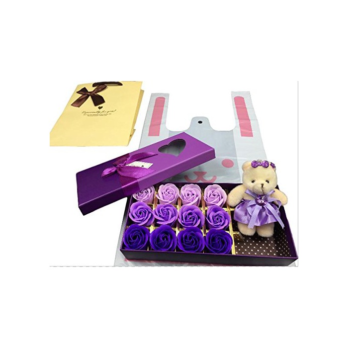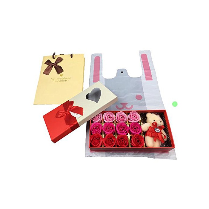 상품 내용: 장미 soap 3종류 의 컬러 × 4개씩 고, 곰의 봉제인형 × 1개 고, 전용 케이스 들어감 + 바탕이 두꺼운 것수이다 듯한 모양이포 1매(컬러는 옐로우 블루 퍼플의 어느쪽이든입니다) + 토끼무늬 비닐봉투1매(화이트 레드 그린의 어느 것인지(든가)) 입니다