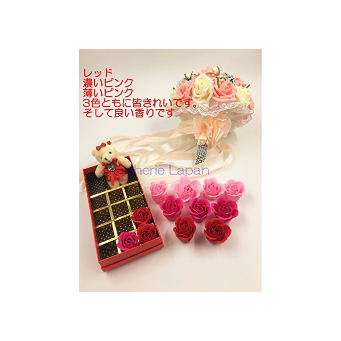 Cherie Lapan 선택할 수 있는 컬러 귀여운 로즈 플라워 soap 박스 & 곰의 봉제인형 & 손 대부 장미 향기 지비누 선물에 최적 핑크