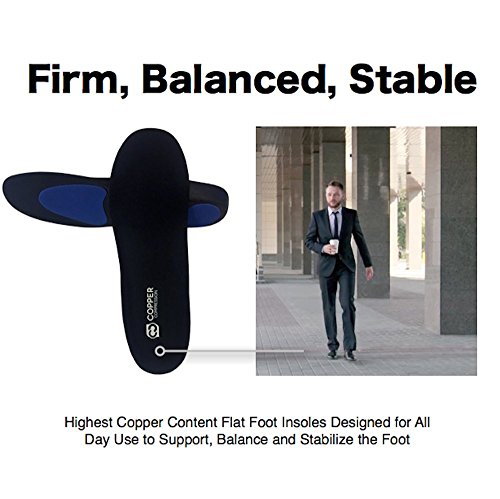 Copper Compression Flat Feet Foot Insoles. GUARANTEED Highest Copper Content Orthotic Shoe Insole / Inserts (Patent Pending). Support For Flat...