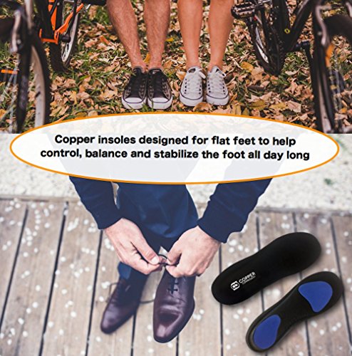 - HIGH PERFORMANCE + YOU CAN WEAR IT EVERYDAY - Copper Compression Flat Foot Insoles / Inserts are for both men and women and are extremely comfortable. They can be worn everyday to help you get the support you need! With superior Shock Absorption and Cushioning these orthotic foot insoles are Perfect for any Tommie, Jane, or Harry.