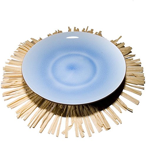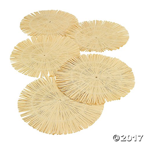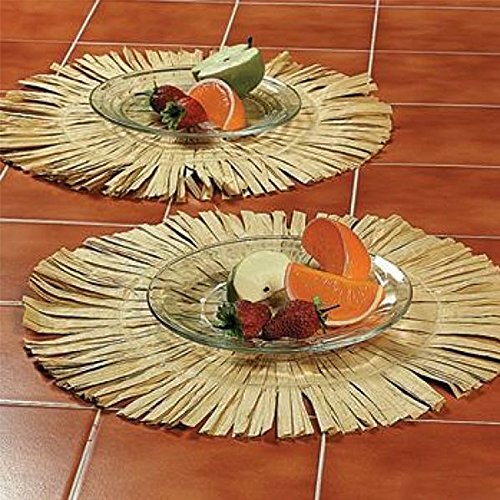 12 Hawaiian Luau Round Raffia Fringe Placemats 15"