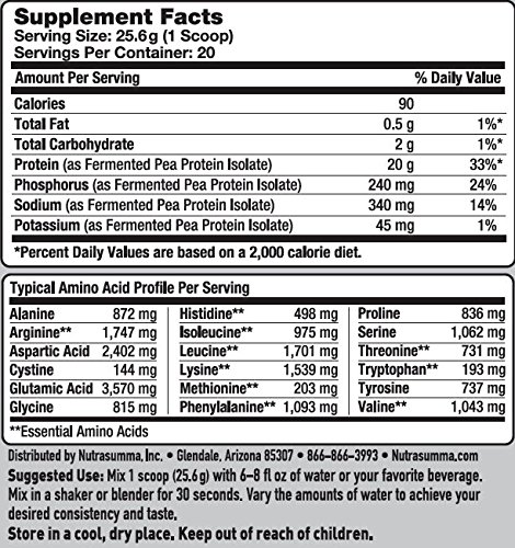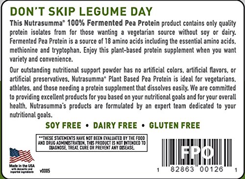 -. Binding : Health and Beauty -. Brand : Nutra Summa -. EAN : 0182863001261 -. Feature : Fermented -. IsAdultProduct : 0 -. Label : Nutrasumma, Inc. -. LegalDisclaimer : Nutra Summa Pure Skin blends natural botanical ingredients and free-radical fighting compounds to support a vital system of the body: your skin. Elite ingredients from FloraGlo LuteinTM and hydrolyzed Alaskan Fish Collagen offer support for the challenges your skin faces every day. -. Manufacturer : Nutrasumma, Inc. -. MPN : 00126 -. PackageQuantity : 1 -. PartNumber : 00126 -. ProductGroup : Health and Beauty -. ProductTypeName : HEALTH_PERSONAL_CARE -. Publisher : Nutrasumma, Inc. -. Studio : Nutrasumma, Inc. -. Title : Nutrasumma "Fermented" Pea Protein Powder-Unflavored/Unsweetened-1.13 lb. -. UPC : 182863001261