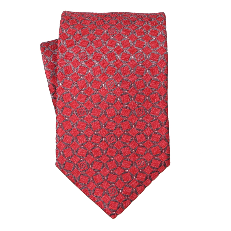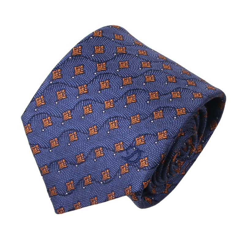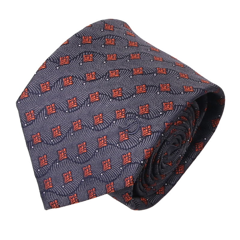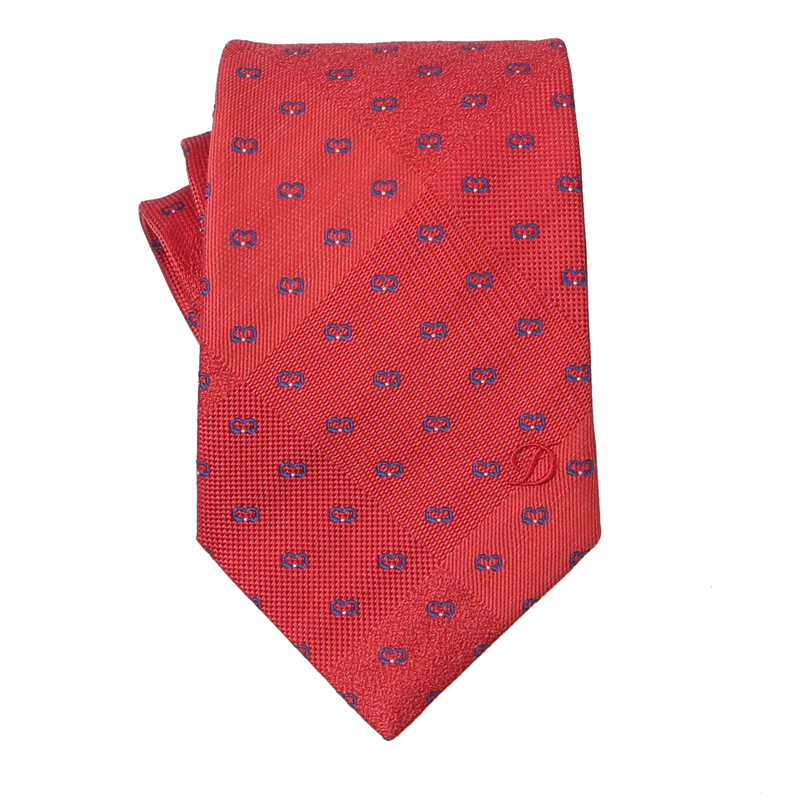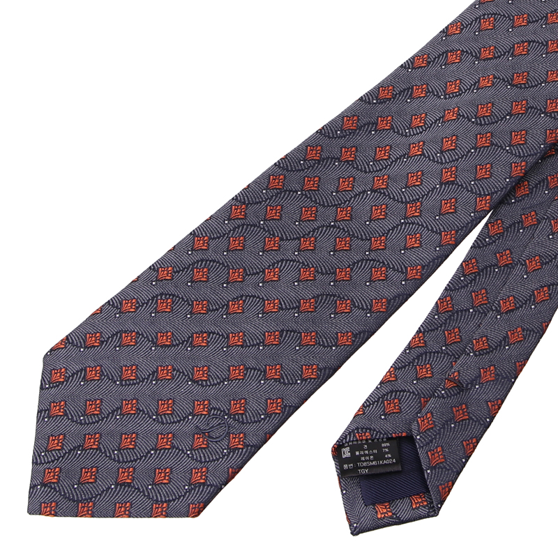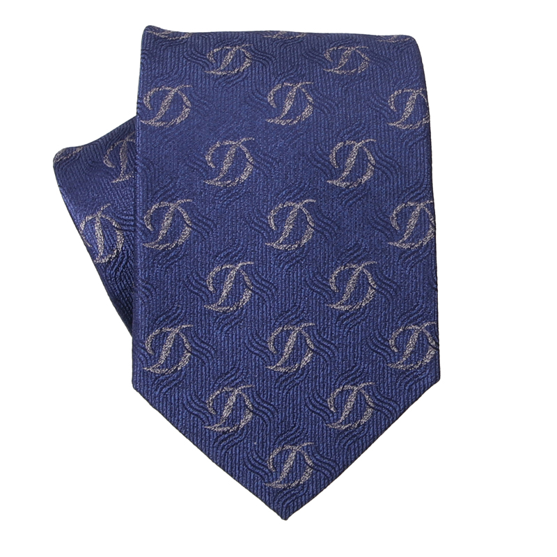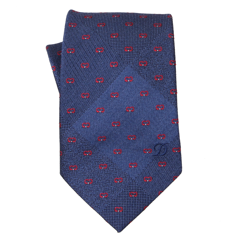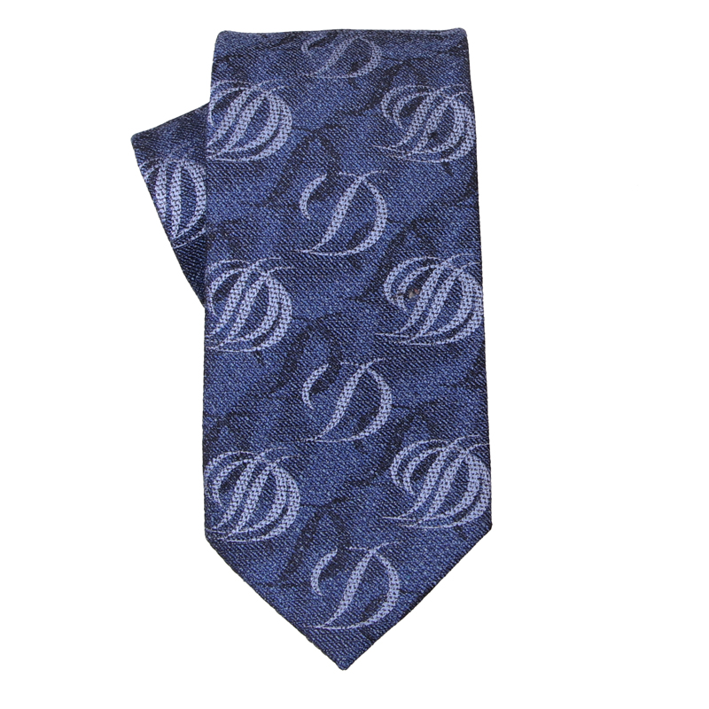 멜란지 조직의 기하학패턴과 듀퐁만의 D로고가 포인트 된 올오버 타이
