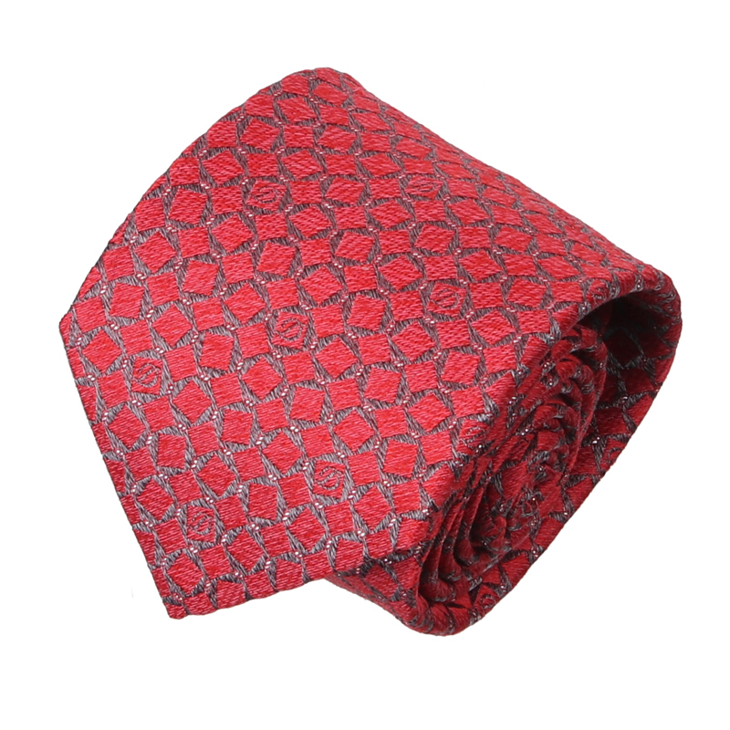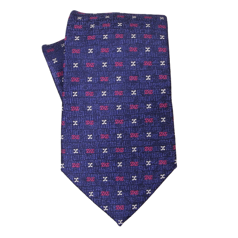 응용된 D로고 패턴과 기하학패턴의 조화를 이룬 올오버 타이