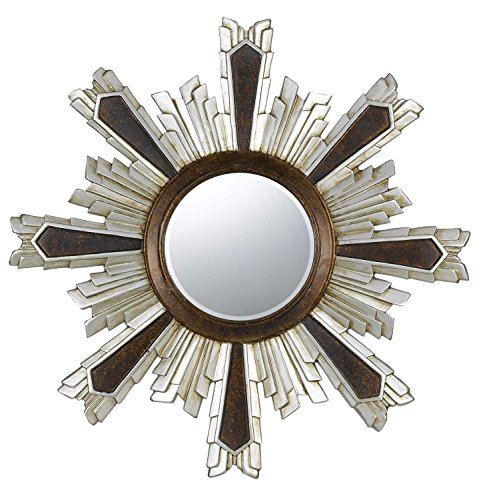 Cal Lighting WA-2168MIR Chafe Polyurethane Beveled Mirror, Round, Walnut/Silver
