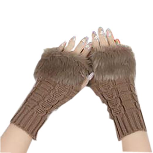 (RICCOS)/Accessories/Cold Weather Accessories/DIRECT FROM USA/RICCOS (TM) Fashion Women Winter Knitted Fur warm Fingerless Gloves Mitten (Khaki)