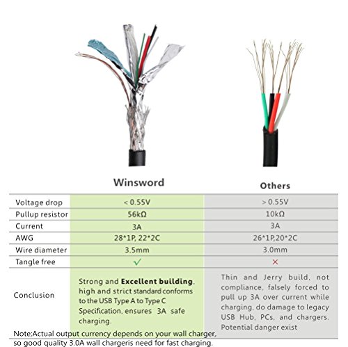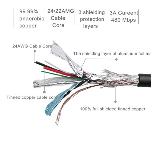 FAST AND SAFE SYNC & CHARGE: Conforming to the USB 3.1 standard Type C Cable and made of 99% anaerobic copper and 28/22AWG core,three shielding protection layers which ensures a safe charging at 3A Maximum and the speed of data sync up to 480 Mbps