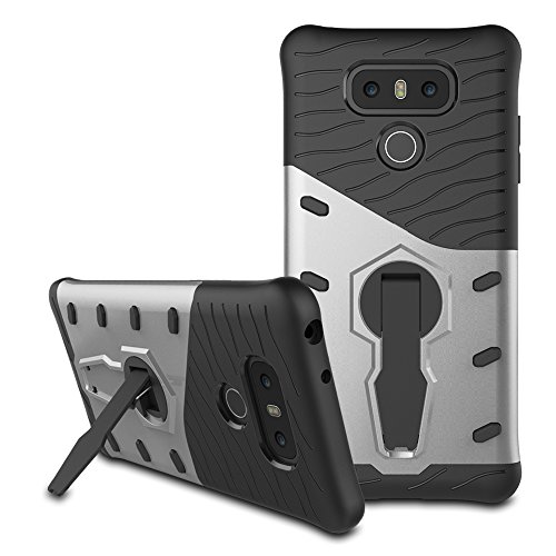 -. Feature : Four corners Desige to prevent drop.Internal design to heat dissipation function. / Full body protective design to keep your LG G6 fully protected. shock proof and scratch resistant and non-slip. / Concave-convex surface design to reduce slipping chance, anti-acratch and fingerP.R.Ints. / Durable polycarbonate provides maximum protection for your phone and 360 degree rotating kickstand. / Special Notice: Compatible with LG G6(2017).