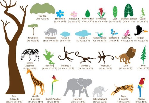 My Wonderful Walls Jungle Wall Stencils for Jungle Theme Wall Mural for Nursery Wall Décor