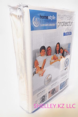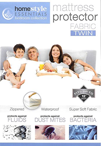 -. Feature : fabric zippered mattress protecter Twin size / Can be wiped with damp cloth / Fits up to 12' deep / protects against fluids, dust mites, bacteria. / Made with hypoallergenic heavy gauge waterproff Fabric.