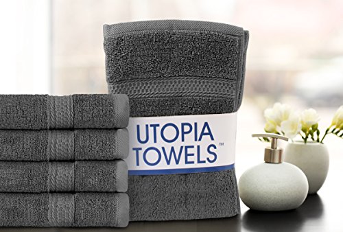 Cotton Large Hand Towels (Grey, 4-Pack,16 x 28 inches) - Multipurpose Use for Bath, Hand, Face, Gym and Spa - By Utopia Towels