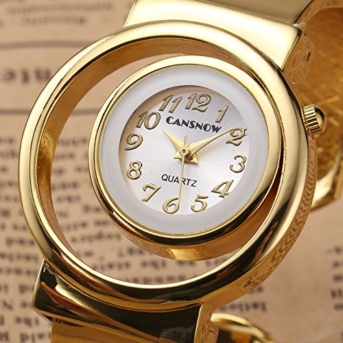 -. Binding : Watch -. Brand : Top Plaza -. Department : Womens -. Label : Top Plaza -. Manufacturer : Top Plaza -. ProductGroup : Watch -. ProductTypeName : WATCH -. Publisher : Top Plaza -. Studio : Top Plaza -. Title : Top Plaza Womens Fashion Analog Quartz Gold Tone Bangle Cuff Bracelet Wrist Watch, Unique Hollow Case Design