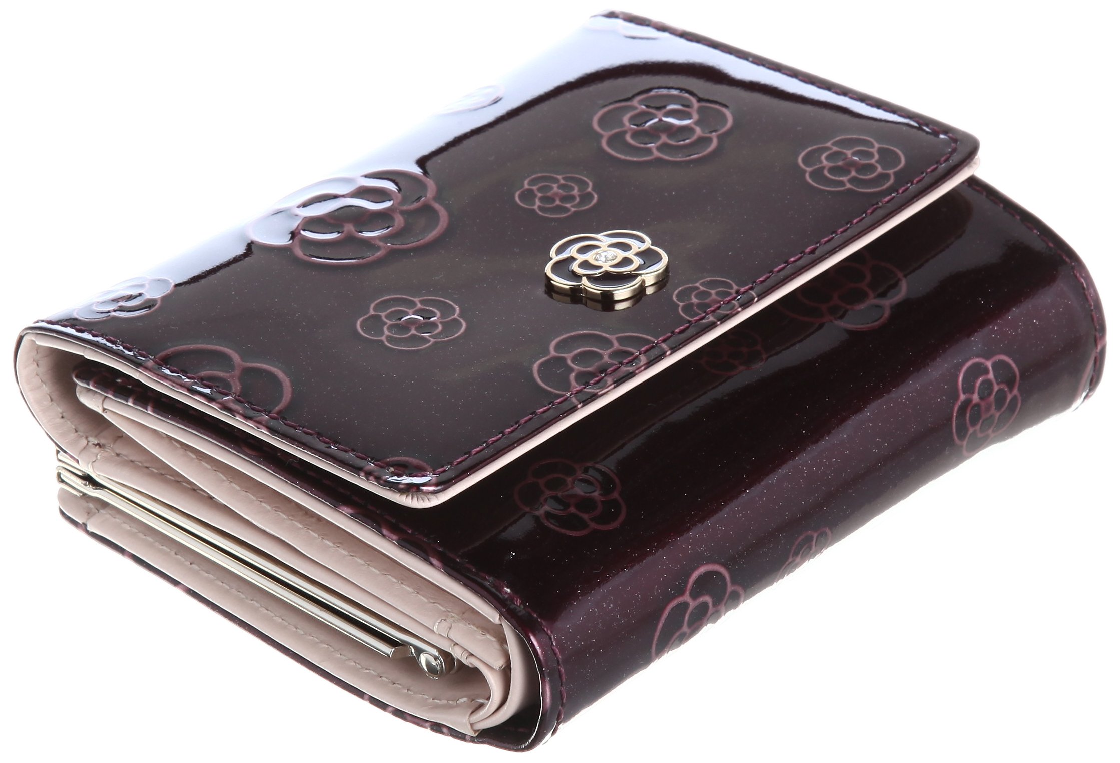 At the front is a camellia motif with a rhinestone.