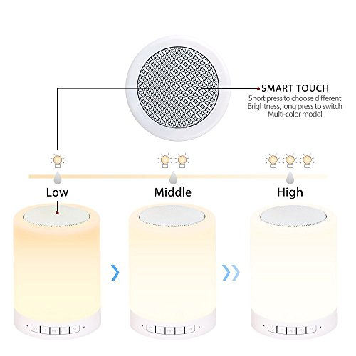 Bedside Lamp Bluetooth Night Light Speaker Lonchan Touch Sensor Dimmable Table Lamp Color Changing Portable Music Lamp Mood Light with TF Card , AUX Supported, Hands-free Speakerphone,White