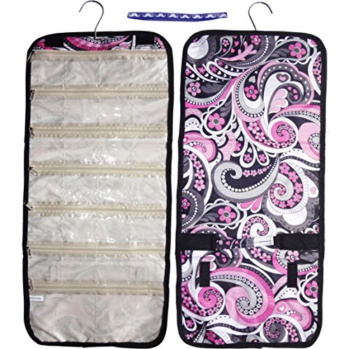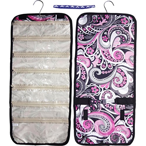 Product Description Best Pink Purple Paisley Hanging Jewelry Hanger Travel Bag Roll Up Organizer with Headband Summer Camp Essential for Girls Teens Women by TravelNut (Style 9) 0