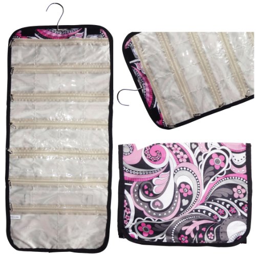 Great Pink Paisley Hanging Jewelry Kit Hanger Travel Bag Roll Up Organizer Makeup Cosmetic Case...