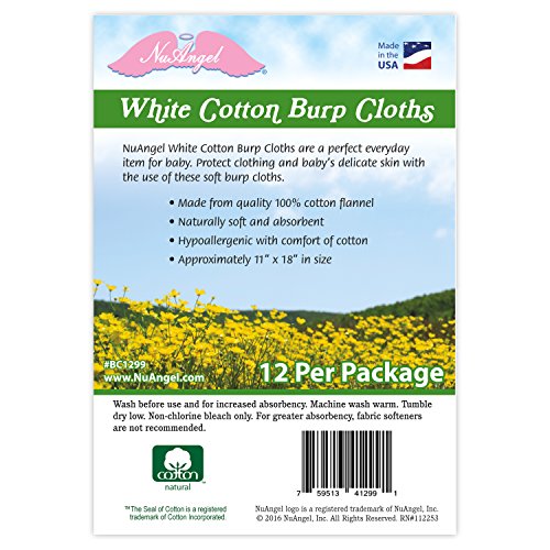 NuAngel 12 Piece Cotton Burp Cloths, White