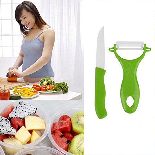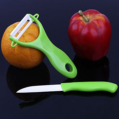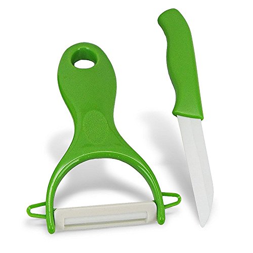 YOFAN Ceramic Chef's Knife & Peeler Set , 3inch Blade Knife , "Y" Ceramic Peeler , No Need Sharpening - Green