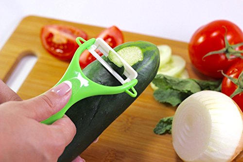 SAFE AND CLEAN:ceramic will not rust and it is healthier than steel.It is dishwasher-safe and easy to clean.There are 3 holes of the peeler for easy hooking and keeping clean from other materials