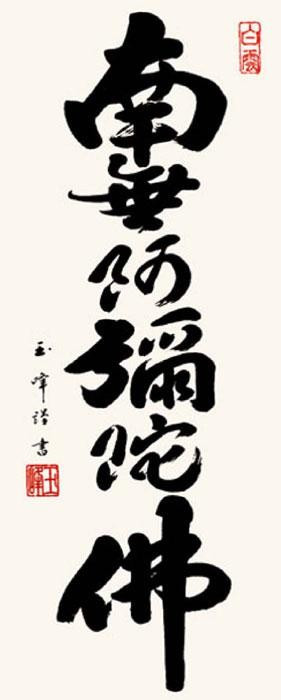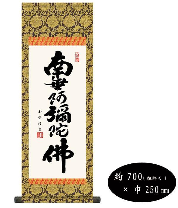 | 勢いのある筆さばきで墨痕鮮やかにしたためた、日々の平安を授けてくれる名号作品です。阿弥陀如来の慈愛が満ちあふれるありがたい六文字です。 |