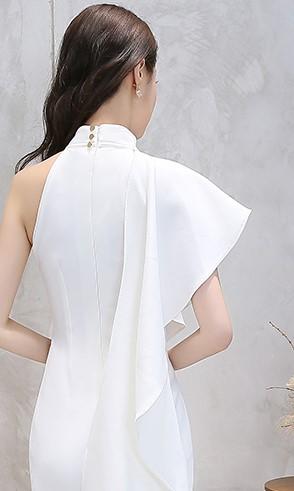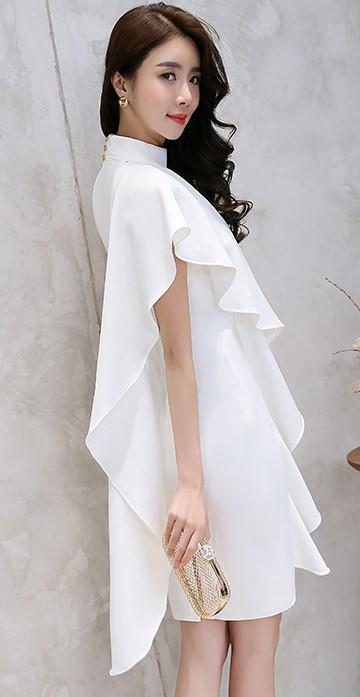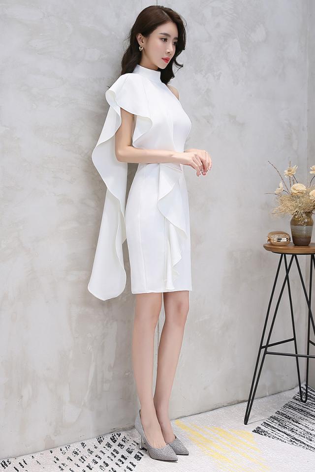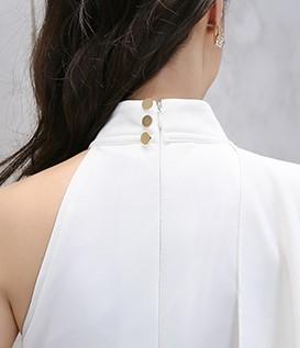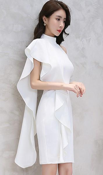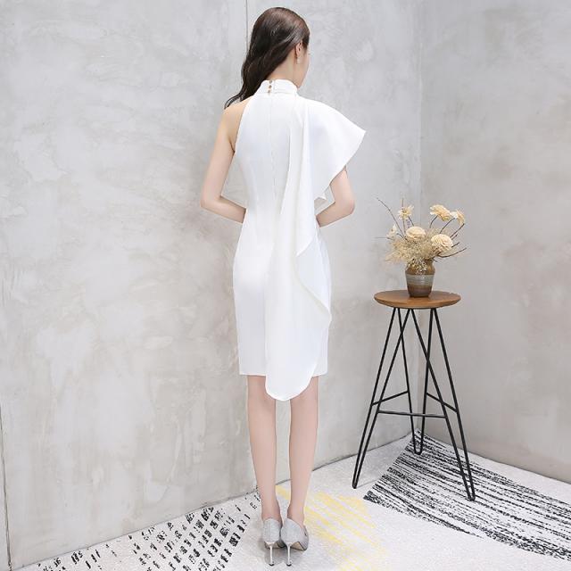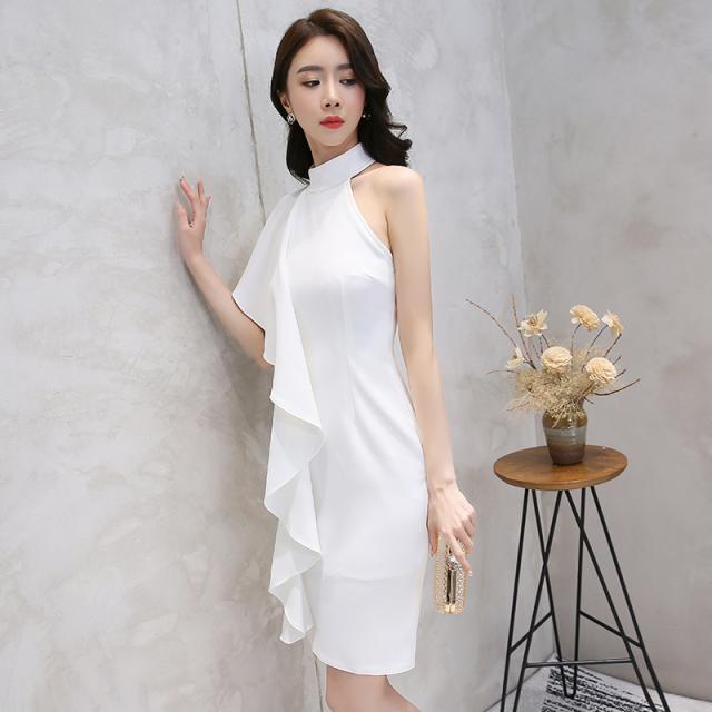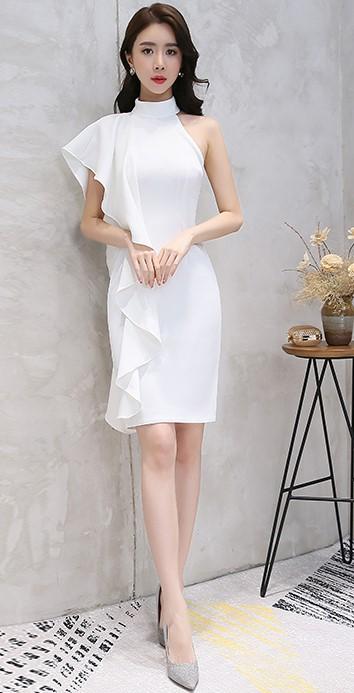 ドレス パーティードレス ホルターネック ノースリーブドレス 膝丈ドレス アシンメトリー ビッグフリル フリル ワンショルダードレス エレガント セクシー ゴージャス トレンド モード きれいめ クール オシャレ パーティー 二次会 イベント スリット