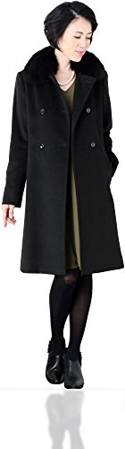 3쿄쇼회 롱 코트 레이디스 캐시미어 100% 폭스 옷깃부 더블 재단 모피