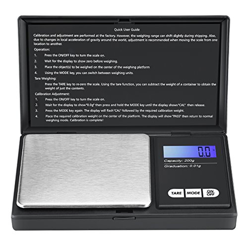 - High Accuracy: AMIR digital pocket kitchen scale built with high precision sensor system, provides you with instant and accurate results from 0.01g (0.001oz) to 200g. Easy to clean and use, guarantee you an accurate weighing reading.