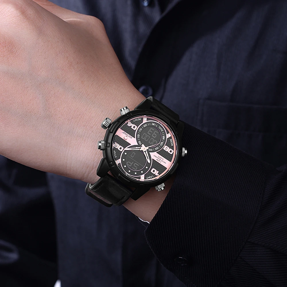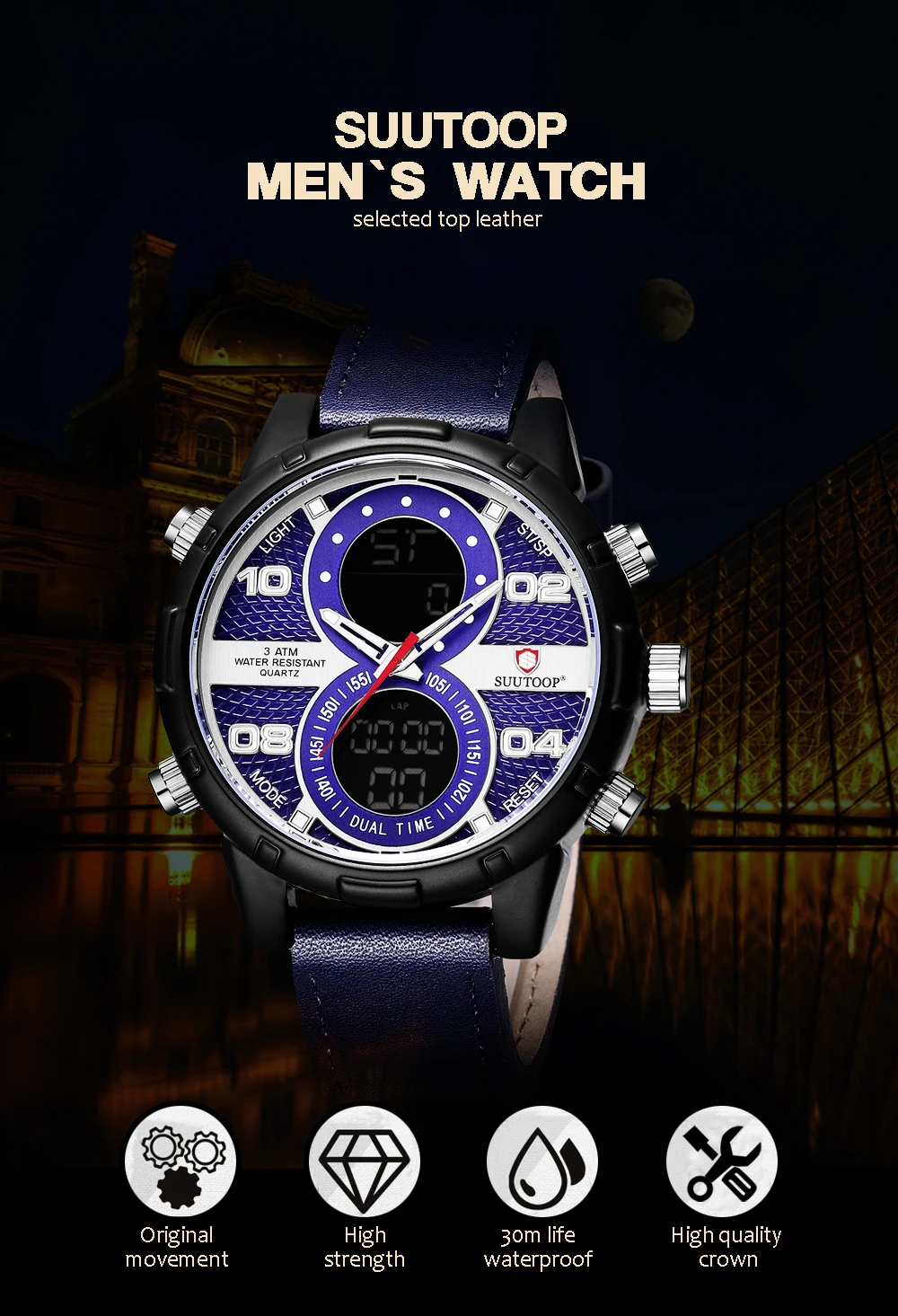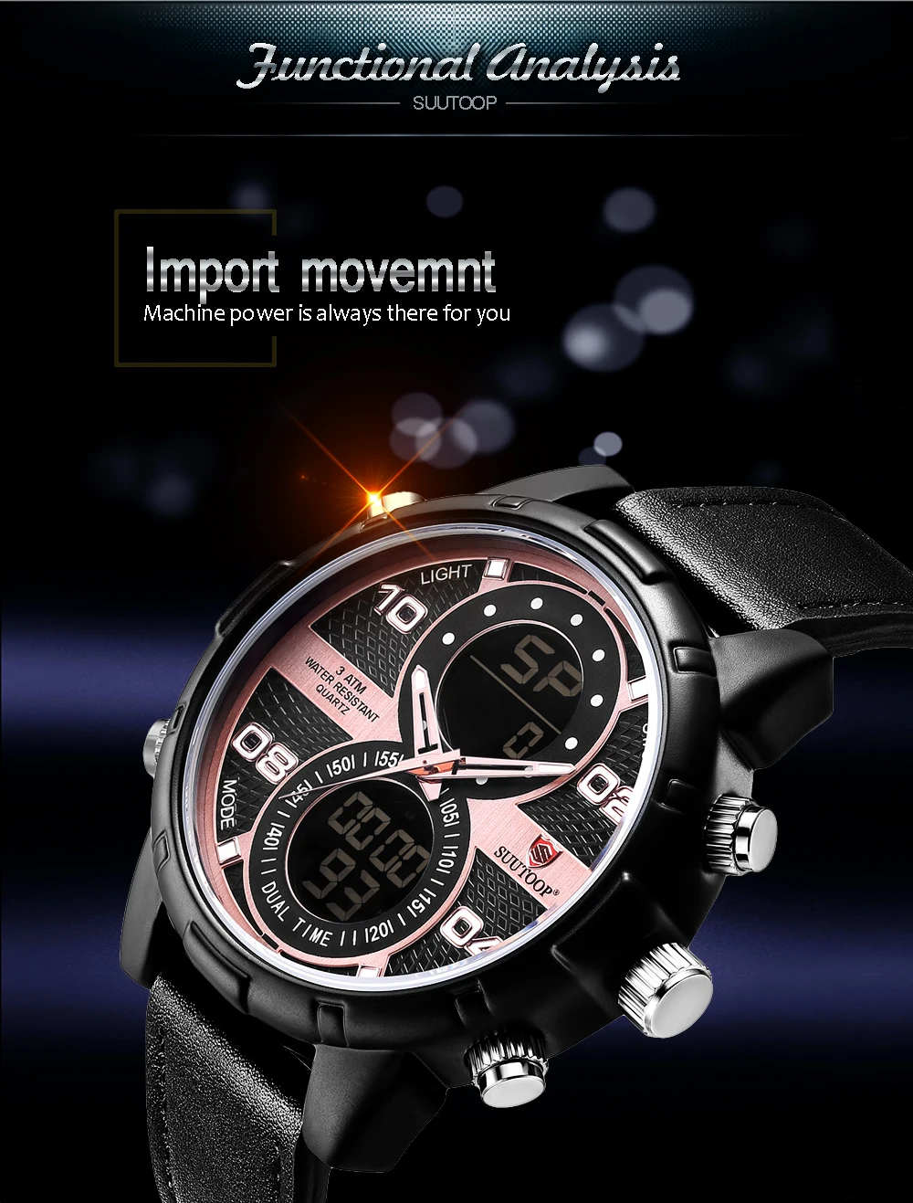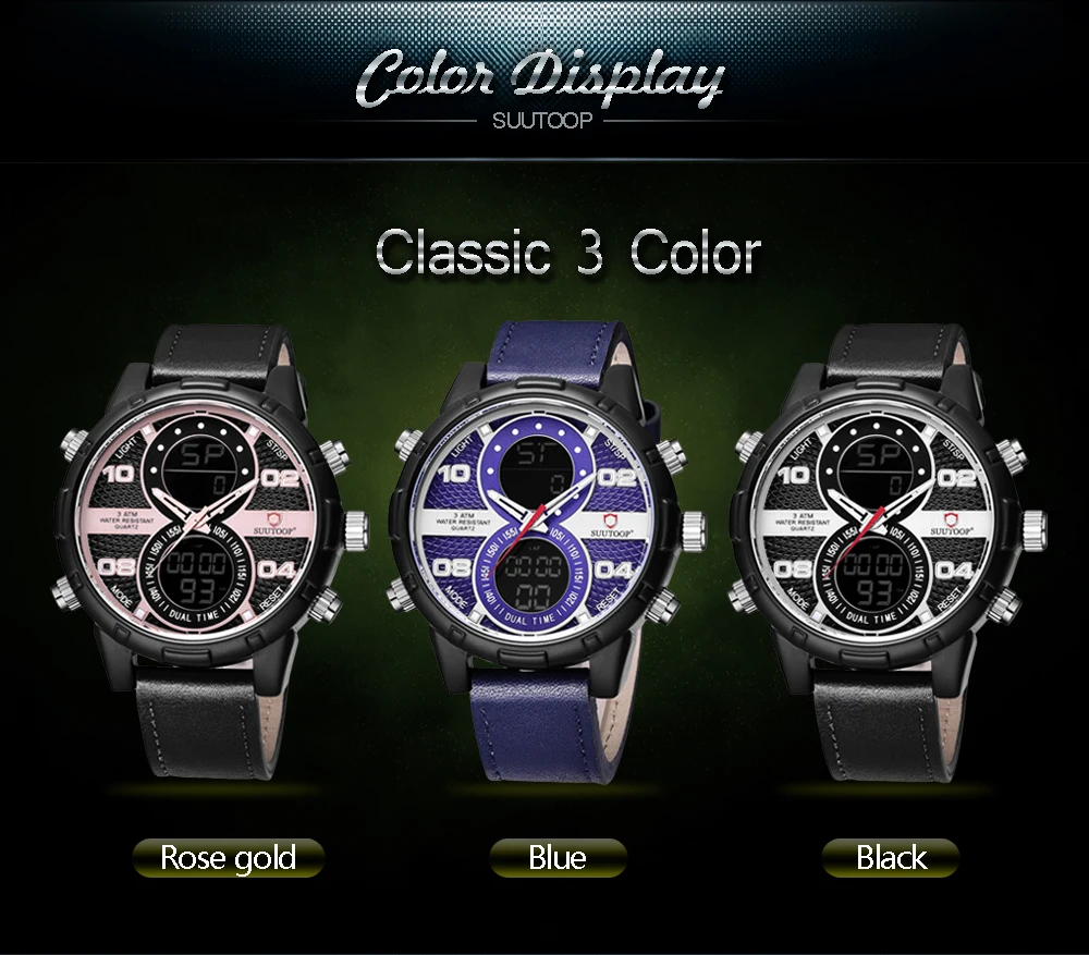 Feature:Complete Calendar,Shock Resistant,Week Display,Water Resistant,Stop Watch,Back Light,LED display,Alarm