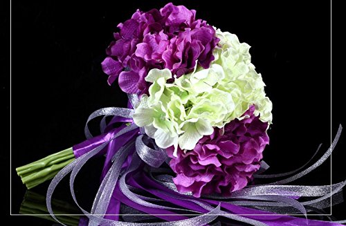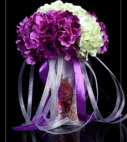 - Title : Hestian 9" Hydrangea Bridal Toss Bouquet Wedding Bouquet Silk Rose Hand Tie (purple and white)
