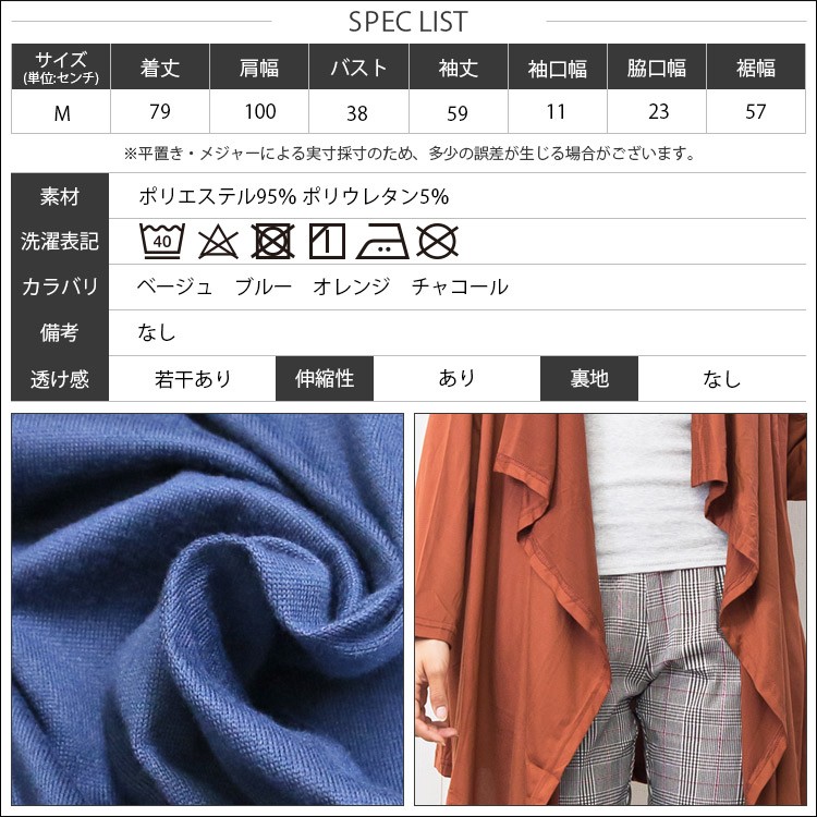 実寸:着丈 79cm バスト 100cm 肩幅 38cm 袖丈 59cm 袖口幅 11cm 脇口幅 23cm 裾幅 57cm