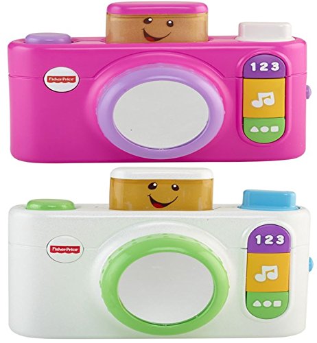 A picture-perfect way to teach numbers, shapes, words and more! Smile! That's what Baby will do with the Laugh & Learn Click 'n Learn Camera. Press one of the 3 buttons and, "click!" Learn about numbers, shapes and more! Push the shutter button and, "click!" Baby learns about colors. Push the flash button and, "click!" A peek-a-boo flash pops up and Baby hears greetings. All colors, numbers, shapes, greetings and more are spoken. What a picture-perfect way to introduce Baby to early role play!Feature