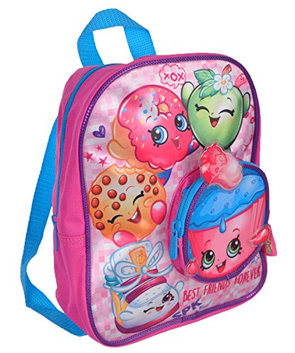 -. Feature : Shopkins mini backpack / Adjustable shoulder straps / Zippered coin purse / Glittery trim / 10" x 9"