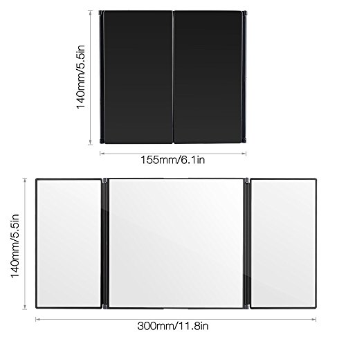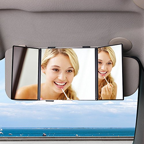 Car Visor Mirror, Travel Foldable Makeup Vanity Mirror Clip On Sun Visor 300mm 11.8” Universal for Car Truck SUV Rear View Mirror (11.8in5.5in, Black)