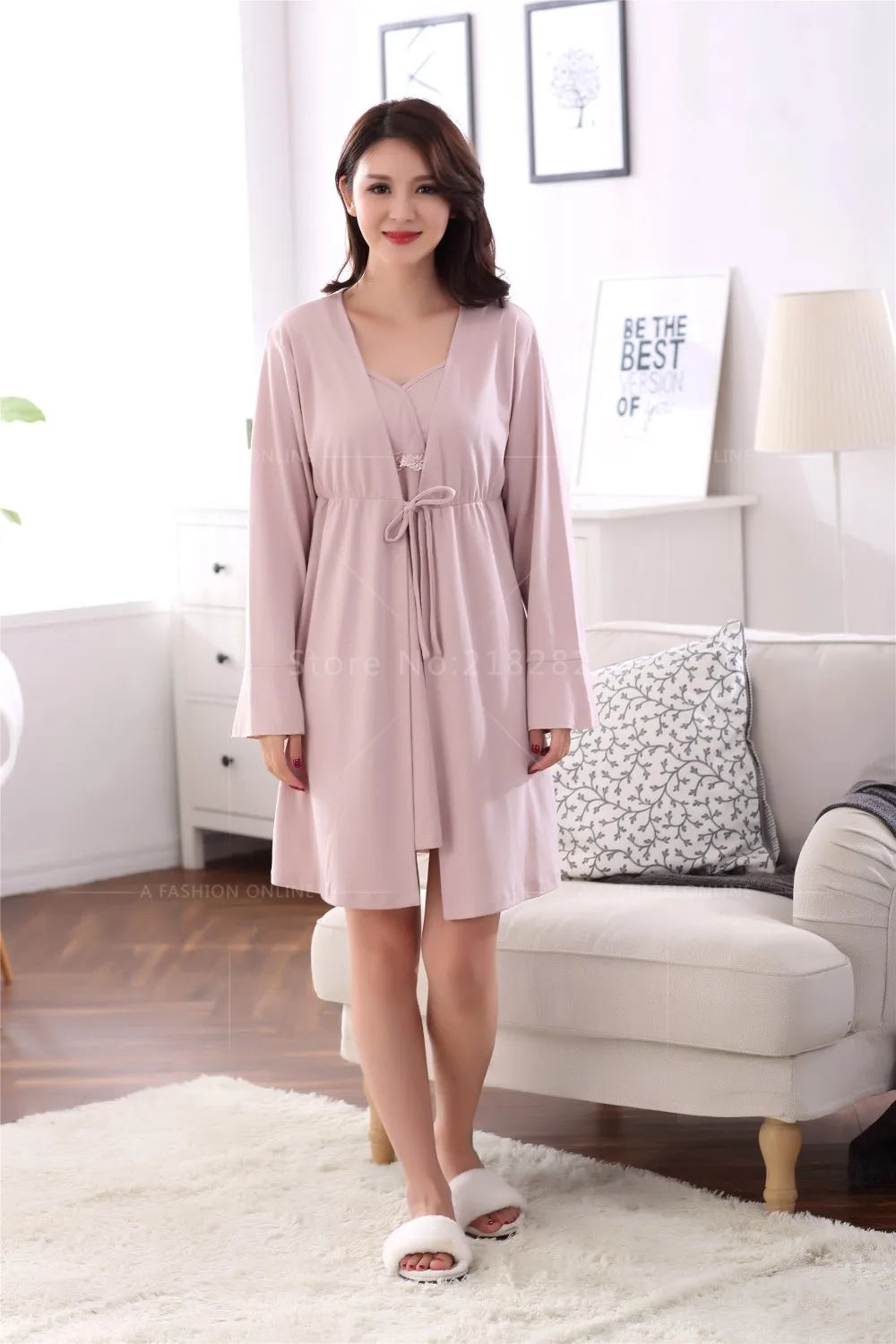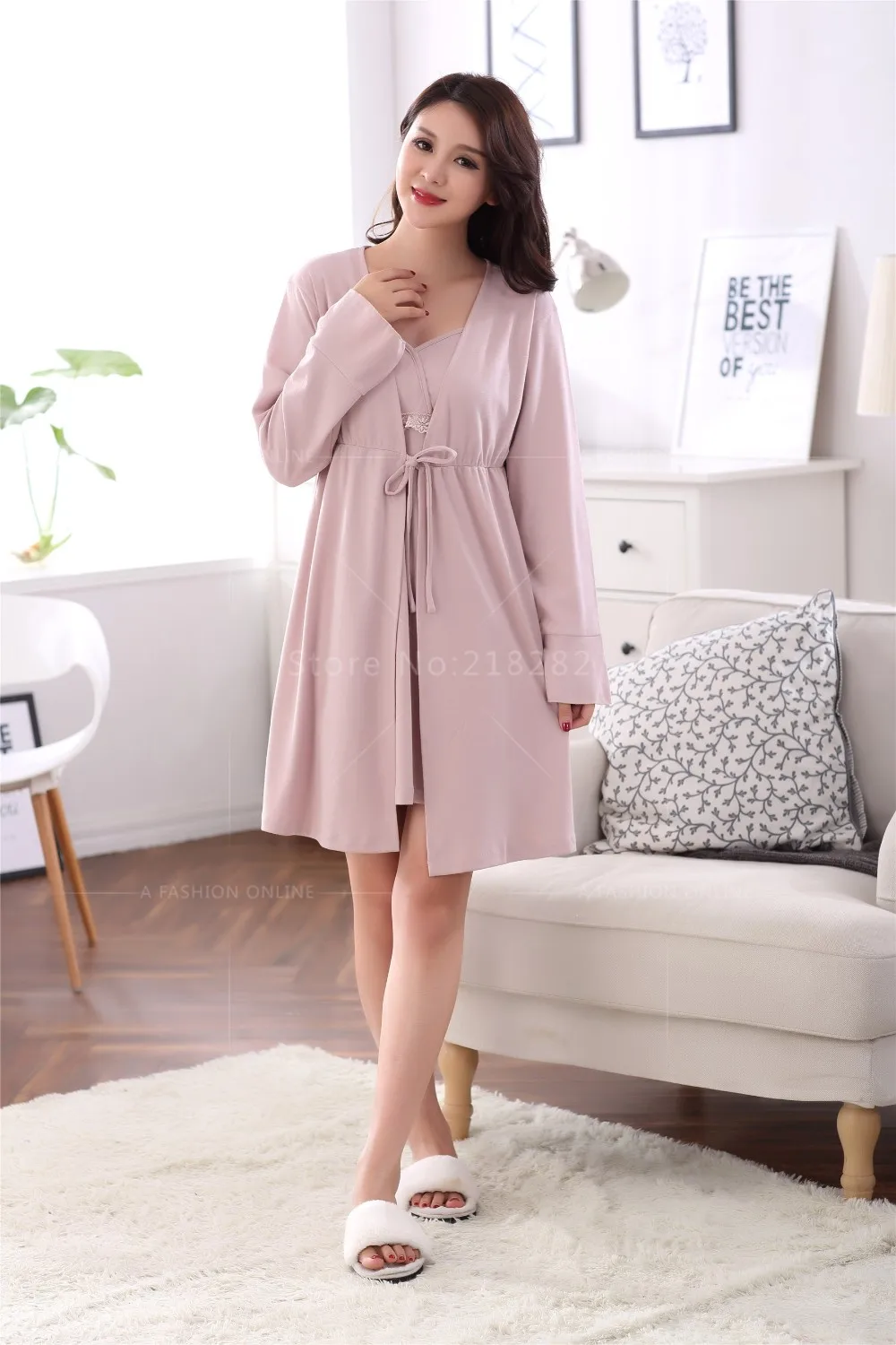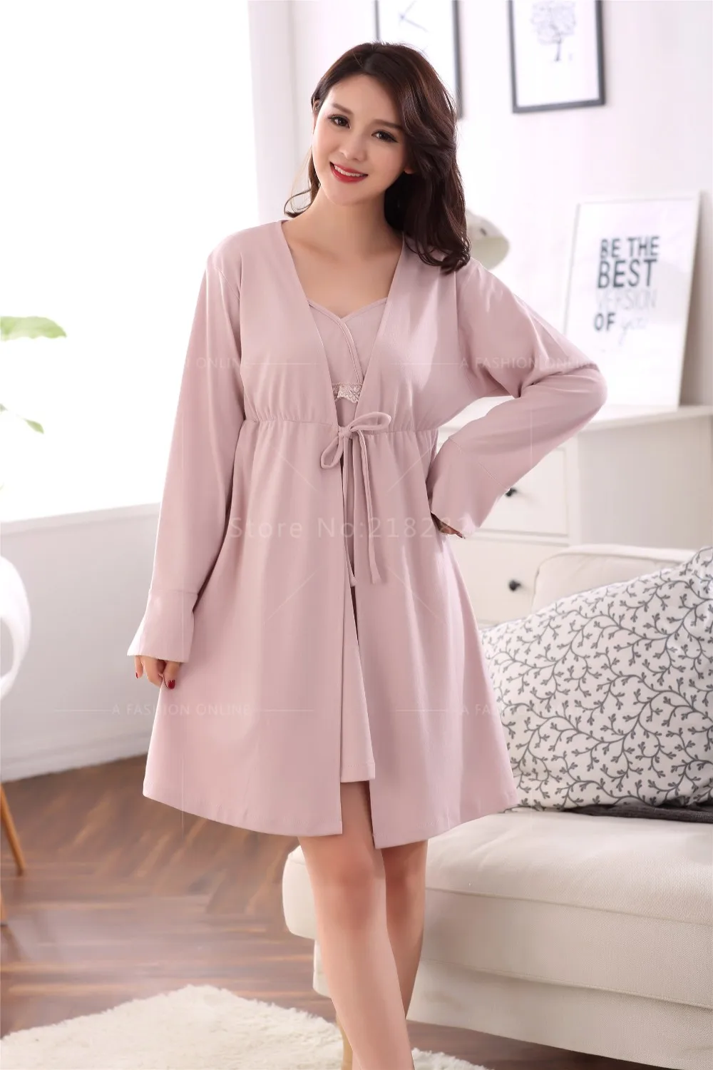 nightgown robe set:Pink pyjamas women