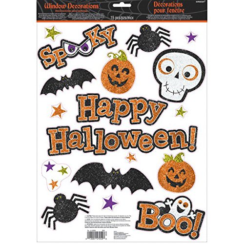 Amscan Glitter Family Friendly Halloween Vinyl Clings 15/pkg