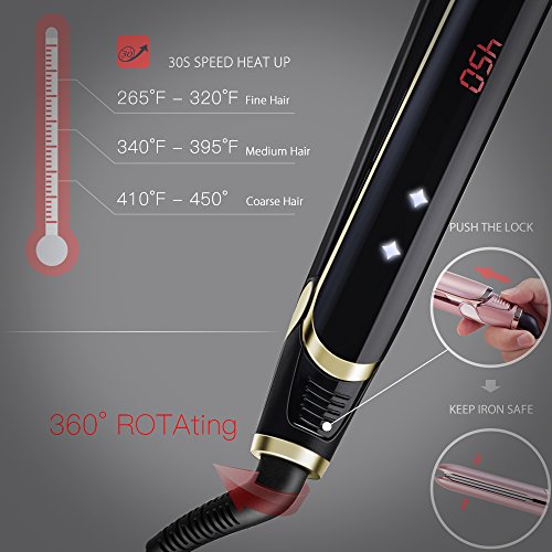 ADJUSTABLE TEMPERATURE:Digital Control temperature ranges from 265℉ to 450℉, 30s instant heat up, suitable for fine, coarse, thin and thick hair