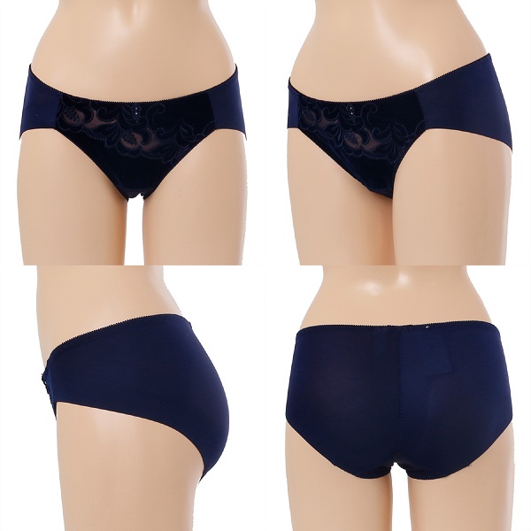 벨벳자수레이스를 최대한 살리는 디자인으로 뒤판 햄원단과 매칭한 노라인 삼각 제품.