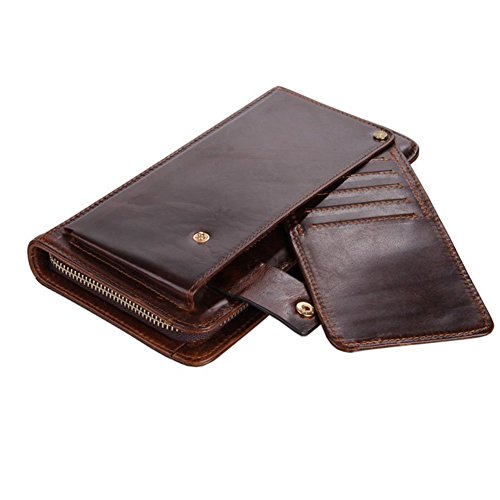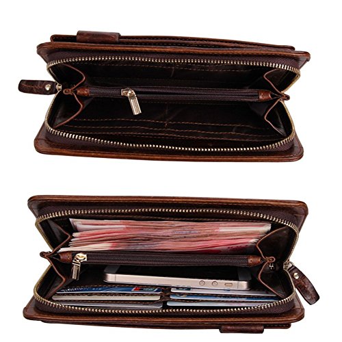 Structure: Front pocket with a removable Card slots for 5pcs Credit card. Main section with a zipper closure, it has 8 card slots, 2 receipt holders, one zipper pocket, 2 cash holders and it can hold banknotes, 5.5'' cell-phone or less.