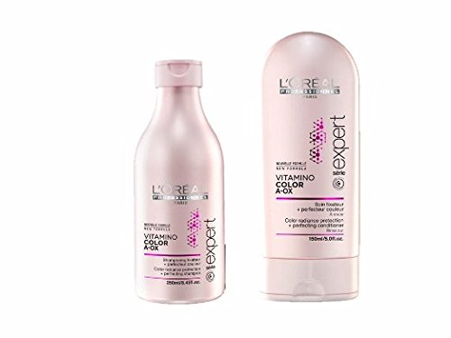 -. Binding : Health and Beauty -. Brand : L'Oreal Paris -. EAN : 2500006210284 -. Feature : One 8.45-ounce bottle of shampoo for color-treated hair/One 5-ounce bottle of conditioner for color-treated hair / For normal to thick and slightly to moderately sensitized hair/For normal to thick and slightly to moderately sensitized hair / Nourishes and protects the hair fiber/Nourishes and protects the hair fiber -. IsAdultProduct : 0 -. Label : L'Oreal -. LegalDisclaimer : **NEW, SEALED AND ORIGINAL.. **SHIPS IN 24 HOURS.**PAY STANDARD AND GET FREE UPGRADE TO EXPEDITED SHIPPING** -. Manufacturer : L'Oreal -. Model : S-30103 C-30724 -. MPN : E1491500-E1491800 -. NumberOfItems : 1 -. PackageQuantity : 2 -. PartNumber : E1491500-E1491800 -. ProductGroup : Beauty -. ProductTypeName : BEAUTY -. Publisher : L'Oreal -. Size : set oz. -. Studio : L'Oreal -. Title : L'Oreal Professionnel Paris Vitamino Color Shampoo 8.45oz & Conditioner 5oz -. UPC : 885118702707