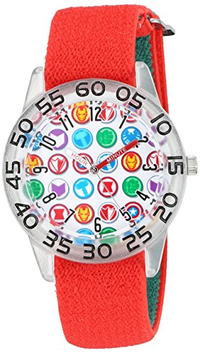-. Binding : Watch -. Brand : Marvel -. Color : Red -. Department : boys -. EAN : 0843231098206 -. Feature : Meets or exceeds all US Government requirements and regulations for Kid's watches / 1 year limited manufacturer's warranty / Analog-quartz Movement / Case Diameter: 32mm / Water Resistant To 30m (100ft): In General, Withstands Splashes or Brief Immersion In Water, but not Suitable for Swimming or Bathing -. Label : Marvel-Roll Up -. Manufacturer : Marvel-Roll Up -. Model : W003242 -. MPN : W003242 -. PackageQuantity : 1 -. PartNumber : W003242 -. ProductGroup : Watch -. ProductTypeName : WATCH -. Publisher : Marvel-Roll Up -. Studio : Marvel-Roll Up -. Title : Marvel Boy's 'Avengers' Quartz Plastic and Nylon Watch, Color:Red (Model: W003242) -. UPC : 843231098206