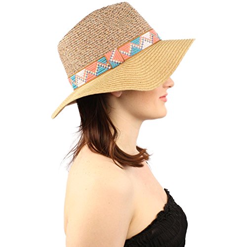-. Title : Summer Aztec Band Fedora Trilby Panama Floppy 2-3/4" Wide Brim Cap Hat S/M Toast