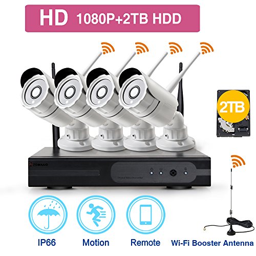 -. Feature : 1. Wireless 4CH 1080P NVR Kit ,Easy to setup,no need wires anymore,no exposed lines anymore,more beautiful,more hidden,more safely.NOTED:THE WIRELESS SYSTEM DO NOT MEAN YOU CAN USE THE SYSTEM WITHOUT ANY CABLES. YOU HAVE TO CONNECT THEM TO THE POWER ADAPTERS FOR SUPPLYING POWER TO CAMERAS AND NVR. / 2. 1080P High Resolution IP Camera, full 1080P High Quality Video Recording / 3. Remote View Anywhere, The Free App allows you to quickly and easily connect to your Smartphone, tablet, or PC / 4.Built-in security dedicated wireless wifi module with stable signal and strong anti-interference,support long transmission distance,open areas up to 350m / 5. Motion Detection Recording, Receive email alerts upon motion detection. NOTED:THE WIRELESS SYSTEM DO NOT MEAN YOU CAN USE THE SYSTEM WITHOUT ANY CABLES. YOU HAVE TO CONNECT THEM TO THE POWER ADAPTERS FOR SUPPLYING POWER TO CAMERAS AND NVR.